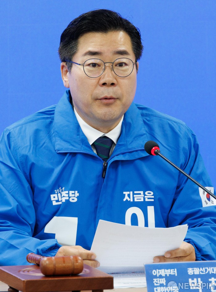 [서울=뉴스핌] 윤창빈 기자 = 박찬대 더불어민주당 총괄선거대책위원장이 7일 오전 서울 여의도 더불어민주당 중앙당사에서 열린 중앙선거대책위원회의에서 모두발언을 하고 있다. 2025.05.07 pangbin@newspim.com