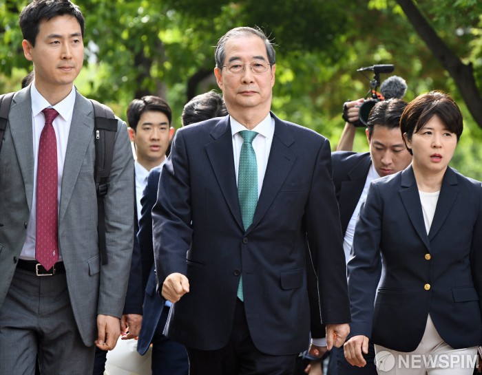 [서울=뉴스핌] 최지환 기자 =한덕수 무소속 예비후보가 8일 오후 김문수 국민의힘 대선후보와 단일화 관련 회동을 위해 이동하고 국회 사랑재로 이동하고 있다. 2025.05.08 choipix16@newspim.com