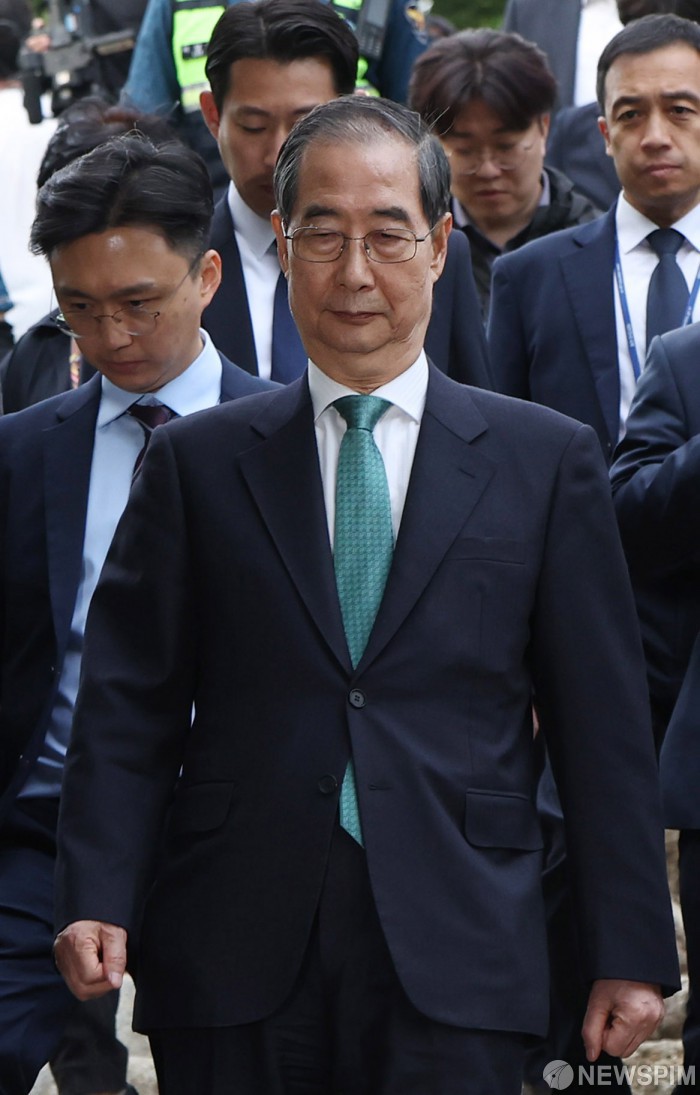 [서울=뉴스핌] 최지환 기자 = 한덕수 무소속 대선 예비후보가 8일 오후 여의도 국회 사랑재에서 열린 김문수 국민의힘 대선 후보와 단일화 관련 회동을 마치고 회동장을 나서고 있다. 2025.05.08 choipix16@newspim.com