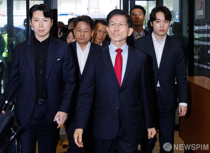 [서울=뉴스핌] 윤창빈 기자 = 김문수 국민의힘 대선 후보가 10일 오전 서울 여의도 선거사무소에서 긴급 기자회견을 마치고 국민의힘 당사로 들어서고 있다. 2025.05.10 pangbin@newspim.com