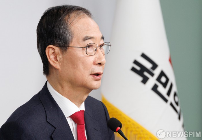 [서울=뉴스핌] 윤창빈 기자 = 국민의힘에 입당한 한덕수 대선 예비후보가 10일 오후 서울 여의도 국민의힘 중앙당사에서 현안관련 긴급 기자회견을 하고 있다. 2025.05.10 pangbin@newspim.com