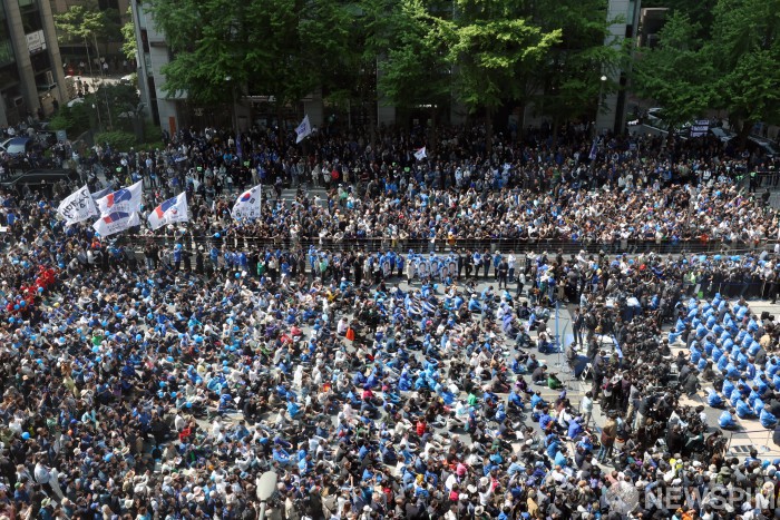 [서울=뉴스핌] 정일구 기자 = 대통령 선거운동 첫날인 12일 오전 서울 종로구 청계광장에 많은 더불어민주당원과 지지자들이 운집했다. 2025.05.12 mironj19@newspim.com