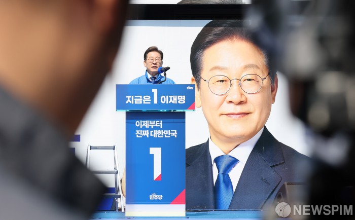 [서울=뉴스핌] 정일구 기자 = 이재명 더불어민주당 대선 후보가 6·3 대통령선거 공식 선거운동 첫날인 12일 서울 광화문 청계광장에서 열린 출정식 및 첫 유세에서 후보 연설을 하고 있다. 2025.05.12 mironj19@newspim.com