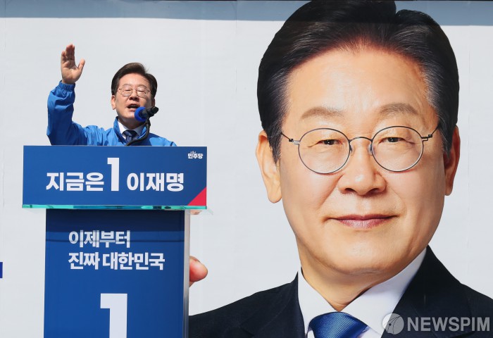 [서울=뉴스핌] 정일구 기자 = 제21대 대통령선거 공식 선거운동 첫날인 12일 오전 서울 종로구 청계광장에서 열린 출정식 및 첫 유세에서 이재명 더불어민주당 대선 후보가 출사표를 밝히고 있다. 2025.05.12 mironj19@newspim.com