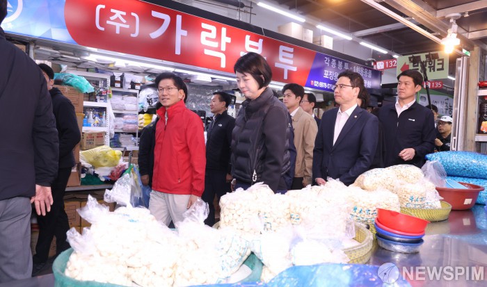 [서울=뉴스핌] 이호형 기자 = 제21대 대통령 선거 공식 선거운동이 시작된 12일 오전 김문수 국민의힘 대선 후보가 서울 송파구 가락시장을 방문하고 있다. 2025.05.12 leemario@newspim.com