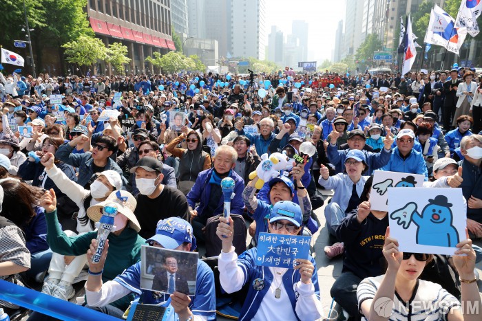[서울=뉴스핌] 정일구 기자 = 이재명 더불어민주당 대선 후보가 12일 오전 서울 광화문 청계광장에서 첫번째 선거 유세를 시작한 가운데 지지자들이 환호하고 있다. 2025.05.12 mironj19@newspim.com