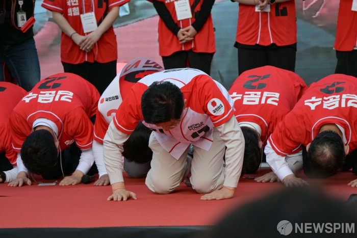 [대구=뉴스핌] 최지환 기자 = 김문수 국민의힘 대통령 후보가 제21대 대통령 선거 공식 선거운동 첫 날인 12일 대구 중구 서문시장을 찾아 시민들을 향해 절하며 지지를 호소하고 있다. 2025.05.12 choipix16@newspim.com