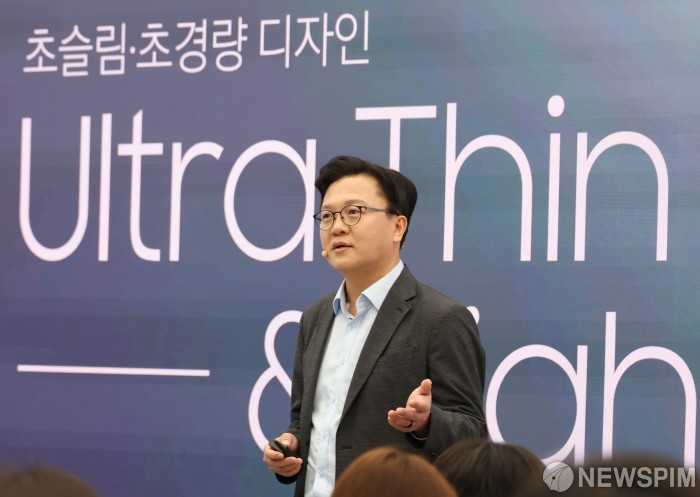 [서울=뉴스핌] 이호형 기자 = 문성훈 삼성전자 부사장이 13일 오전 서울 서초구 서울 강남에서 열린 갤럭시 신제품 S25 엣지 미디어 브리핑에서 신제품 기능과 개발 스토리 등에 대해 설명 하고 있다. 갤럭시 S25 엣지는 두께 5.8mm, 디스플레이 6.66인치, 무게는 160g이며 기존 S 시리즈 가운데 가장 슬림 하다. 2025.05.13 photo@newspim.com