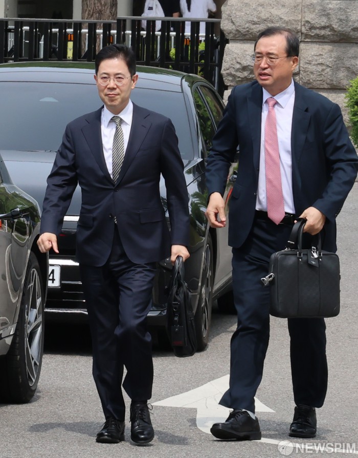 [서울=뉴스핌] 양윤모 기자 = 손준성 대구고등검찰청 차장검사(검사장)가 13일 오후 헌법재판소의 탄핵심판 정식 변론기일에 참석하고 있다. 손 검사장은 2020년 21대 총선을 앞두고 여권 인사에 대한 고발을 사주했다는 '고발사주' 의혹이 지난달 24일 대법원에서 무죄가 확정하면서 탄핵심판 절차가 재개되었다. 2025.05.13 yym58@newspim.com