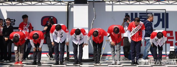 [진주=뉴스핌] 최지환 기자 = 김문수 국민의힘 대선 후보가 14일 오전 경남 진주시 대안동 광미사거리에서 시민들에게 인사하고 있다. 2025.05.14 choipix16@newspim.com