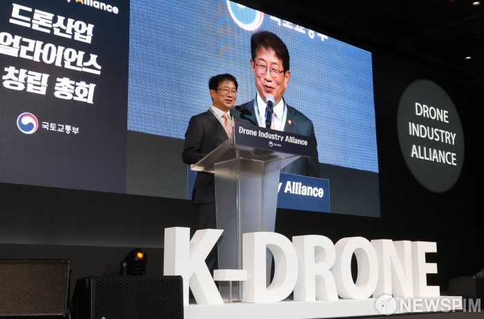 [서울=뉴스핌] 양윤모 기자 = 박상우 국토교통부 장관이 14일 오후 서울 강서구 마곡 코엑스에서 개최된 '드론산업 얼라이언스(Drone Industry Alliance, DIA) 창립총회' 행사에 참석 창립선언을 하고 있다. 국토교통부는 이번 행사에서 농업과 소방, 건설·시설 관리, 물류, 항공 드론을 국산 기술로 개발하기 위한 ‘드론 완성체 5대 프로젝트’를 공개했다. 2025.05.14 yym58@newspim.com