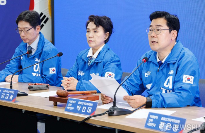 [서울=뉴스핌] 윤창빈 기자 = 박찬대 더불어민주당 상임총괄선거대책위원장이 16일 오전 서울 여의도 민주당 중앙당사에서 열린 중앙선거대책위원회의에서 모두발언을 하고 있다. 2025.05.16 pangbin@newspim.com