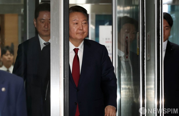 [서울=뉴스핌] 사진공동취재단 = 윤석열 전 대통령이 19일 오후 서울 서초구 서울중앙지방법원에서 열린 내란 우두머리 혐의, 직권남용 권리행사방해 혐의 사건 4차 공판을 마친 뒤 법정을 나서고 있다. 2025.05.19 yym58@newspim.com