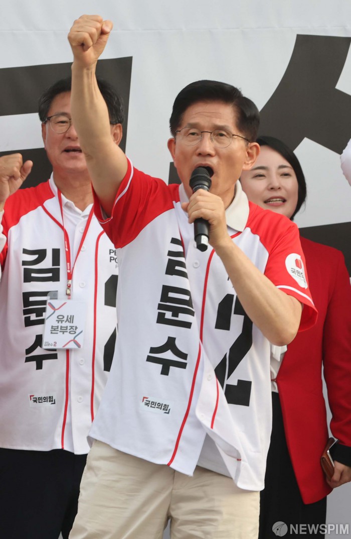 [양주=뉴스핌] 최지환 기자 = 김문수 국민의힘 대선 후보가 21일 오후 경기 양주시 평화로에서 열린 “더 편하게 더 빠르게” 양주 유세에서 유권자들에게 지지를 호소하고 있다. 2025.05.21 choipix16@newspim.com