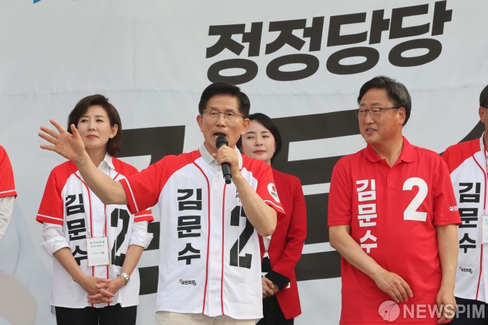 [양주=뉴스핌] 최지환 기자 = 김문수 국민의힘 대선 후보가 21일 오후 경기 양주시 평화로에서 열린 “더 편하게 더 빠르게” 양주 유세에서 유권자들에게 지지를 호소하고 있다. 2025.05.21 choipix16@newspim.com