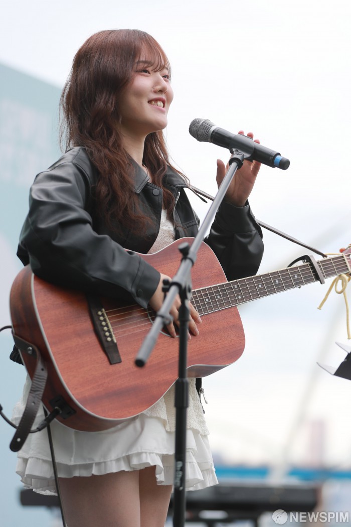 [서울=뉴스핌] 이형석 기자 = 싱어송라이터 채겸이 24일 오후 서울 서초구 한강 서래섬에서 열린 2025 한강 서래섬 청춘 버스킹 with 히든스테이지에서 인사말을 하고 있다. 반포 한강공원 일대에서 열리는 '2025 한강 서래섬 청춘 버스킹 with 히든 스테이지'는 도심 속에서 무료로 즐길 수 있는 선물 같은 야외 음악 공연이다. 2025.05.24 photo@newspim.com