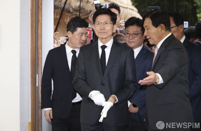 [구미=뉴스핌] 정일구 기자 = 김문수 국민의힘 대선 후보가 24일 오후 오후 경북 구미시 박정희 전 대통령 생가를 찾아 참배하고 있다. 2025.05.24 mironj19@newspim.com