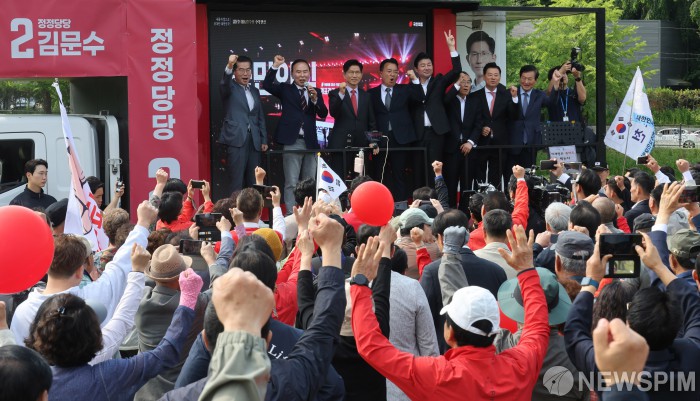 [옥천=뉴스핌] 최지환 기자 = 김문수 국민의힘 대선 후보가 25일 오전 충북 옥천군 육영수 여사 생가를 방문해 참배한 뒤 유권자들에게 지지를 호소하고 있다. 2025.05.25 choipix16@newspim.com
