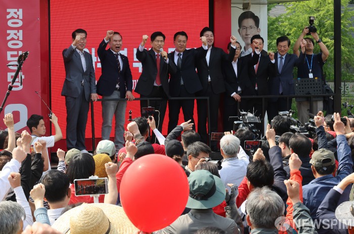 [옥천=뉴스핌] 최지환 기자 = 김문수 국민의힘 대선 후보가 25일 오전 충북 옥천군 육영수 여사 생가를 방문해 참배한 뒤 유권자들에게 지지를 호소하고 있다. 2025.05.25 choipix16@newspim.com
