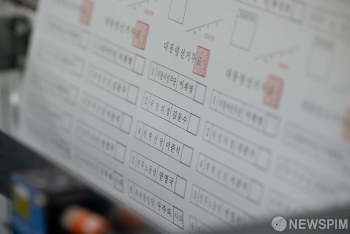 [안양=뉴스핌] 김학선 기자 = 제21대 대통령선거를 9일 앞둔 25일 오전 경기 안양시 동안구 한 인쇄소에서 투표용지가 인쇄되고 있다. 2025.05.25 yooksa@newspim.com