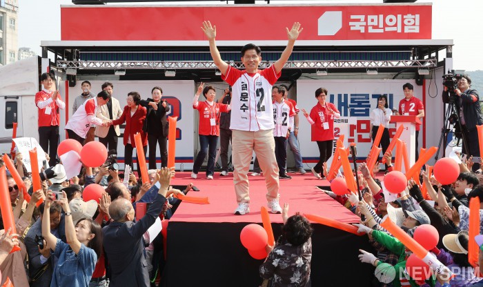 홍성 유권자들 만나는 김문수 국민의힘 대선 후보