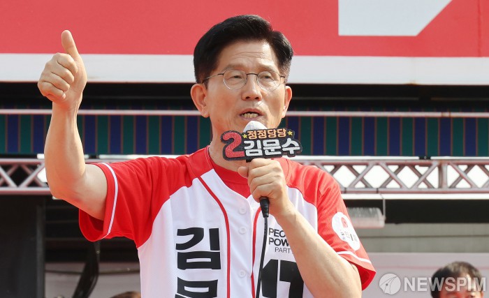 [홍성=뉴스핌] 최지환 기자 = 김문수 국민의힘 대선 후보가 25일 오후 충남 홍성군 홍성천 복개주차장에서 열린 “기적으로 만들 진짜 홍성” 집중유세에서 유권자들에게 지지를 호소하고 있다. 2025.05.25 choipix16@newspim.com