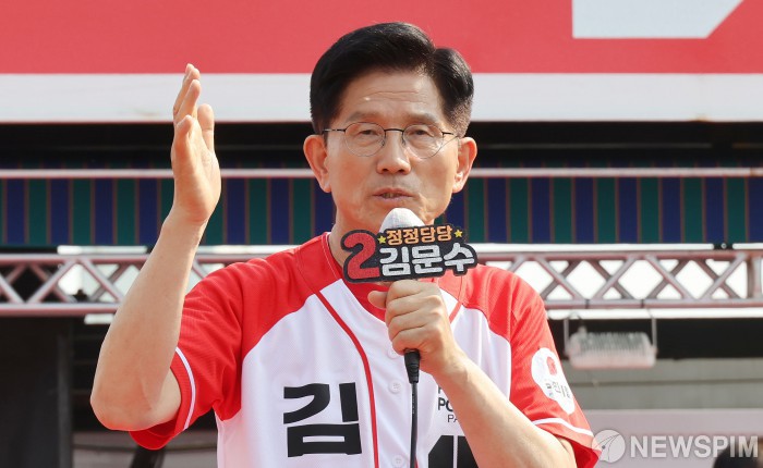 [홍성=뉴스핌] 최지환 기자 = 김문수 국민의힘 대선 후보가 25일 오후 충남 홍성군 홍성천 복개주차장에서 열린 “기적으로 만들 진짜 홍성” 집중유세에서 유권자들에게 지지를 호소하고 있다. 2025.05.25 choipix16@newspim.com