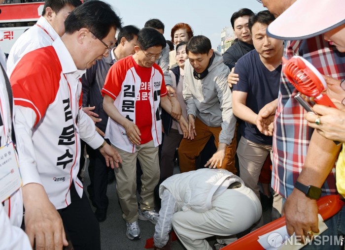 [홍성=뉴스핌] 최지환 기자 = 김문수 국민의힘 대선 후보가 25일 충남 홍성군 홍성읍 내포로에서 유세를 마치고 차로 이동하던 중 한 지지자의 인사를 받고 있다. 2025.05.25 choipix16@newspim.com
