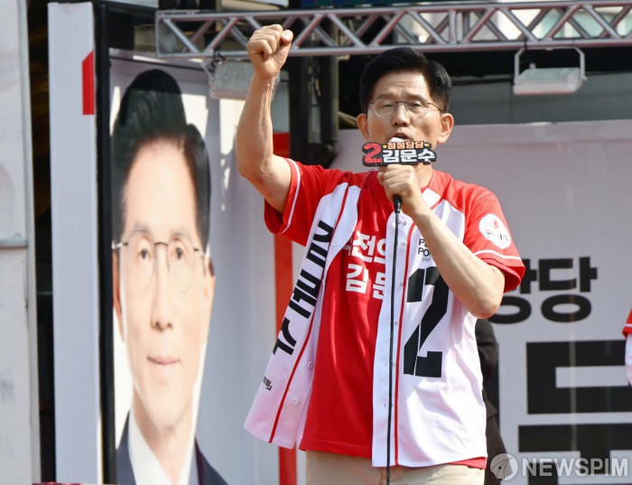 [홍성=뉴스핌] 최지환 기자 = 김문수 국민의힘 대선 후보가 25일 충남 홍성군 홍성읍 내포로에서 열린 유세에서 지지를 호소하고 있다. 2025.05.25 choipix16@newspim.com