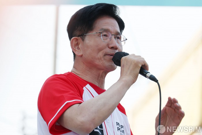 [서산=뉴스핌] 최지환 기자 = 김문수 국민의힘 대선 후보가 25일 충남 서산시 중앙통 로데오 거리에서 유세를 하고 있다. 2025.05.25 choipix16@newspim.com