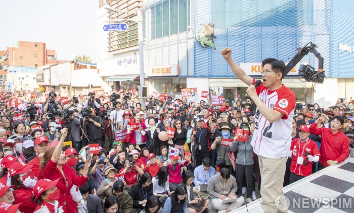 서산시 중앙통 로데오거리에서 유세하는 김문수 후보