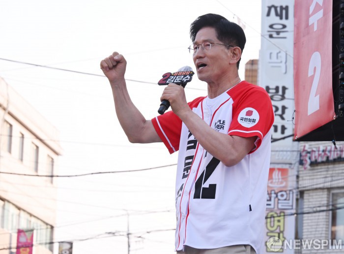 [당진=뉴스핌] 최지환 기자 = 김문수 국민의힘 대선 후보가 25일 충남 당진시장 오거리에서 유세를 하고 있다. 2025.05.25 choipix16@newspim.com
