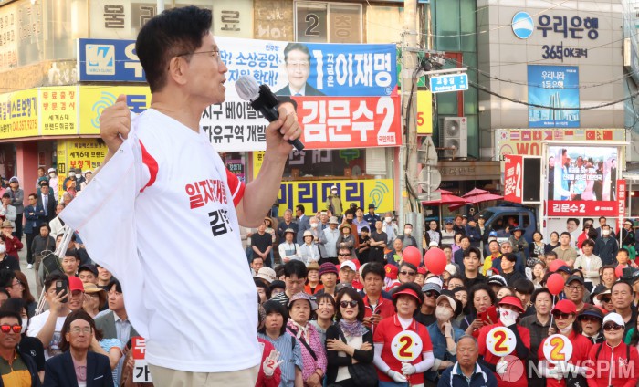 지지 호소나선 김문수 대선 후보, 충남 당진시장 거리유세