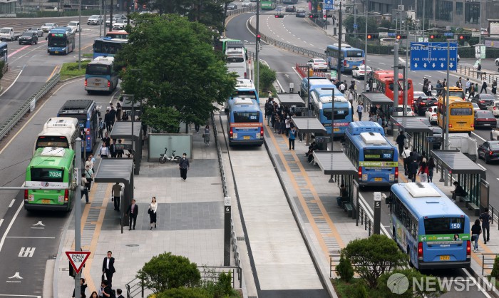 [서울=뉴스핌] 최지환 기자 = 서울시버스노동조합이 예고했던 파업을 유보한 28일 오전 서울 중구 서울역 버스환승센터에서 버스가 정상운행되고 있다. 2025.05.28 choipix16@newspim.com
