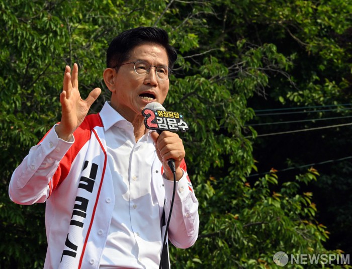 [인천=뉴스핌] 최지환 기자 = 김문수 국민의힘 대통령 후보가 29일 인천 중구 자유공원에서 열린 유세에서 시민들에게 지지를 호소하고 있다. 2025.05.29 choipix16@newspim.com