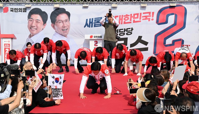 [인천=뉴스핌] 최지환 기자 = 국민의힘 김문수 대선 후보가 29일 인천시 중구 자유공원에서 유세를 하고 있다 2025.05.29 choipix16@newspim.com