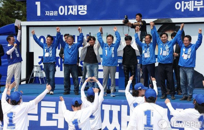 [춘천=뉴스핌] 정일구 기자 = 이재명 더불어민주당 대선 후보가 30일 오후 강원 춘천시 춘천역광장 집중유세에 참석해 지지를 호소하고 있다. 2025.05.30 mironj19@newspim.com