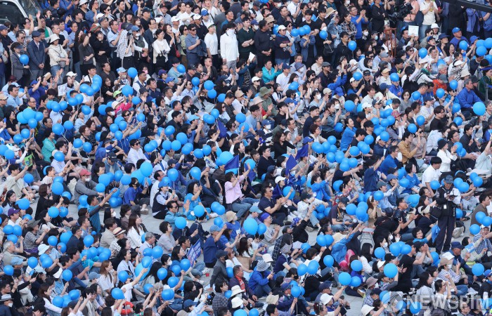 [부산=뉴스핌] 윤창빈 기자 = 1일 오후 부산역 광장에서 열린 더불어민주당 이재명 대선 후보의 유세에 많은 지지자와 시민들이 모여 북적이고 있다. 2025.06.01 pangbin@newspim.com