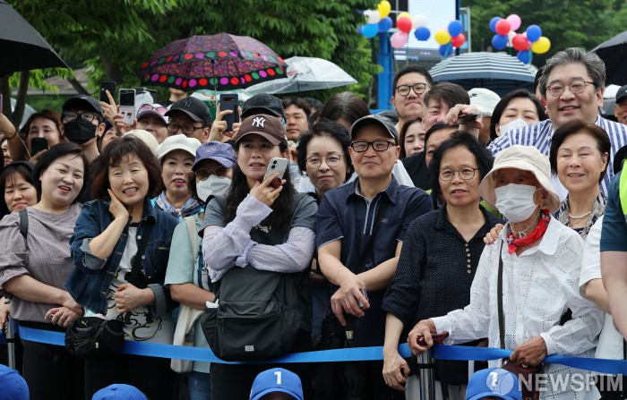 [서울=뉴스핌] 정일구 기자 = 제21대 대통령 선거를 하루 앞둔 2일 서울 강북구 북서울꿈의숲 서문광장에서 열린 이재명 더불어민주당 대선 후보의 유세를 많은 시민들이 지켜보고 있다. 2025.06.02 mironj19@newspim.com
