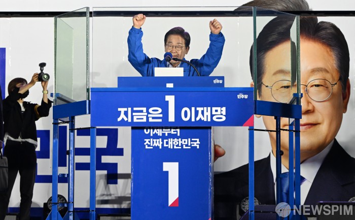 [서울=뉴스핌] 정일구 기자 = 이재명 더불어민주당 대선 후보가 2일 오후 서울 영등포구 여의도공원에서 6.3 대선 피날레 유세를 하고 있다. 2025.06.02 mironj19@newspim.com