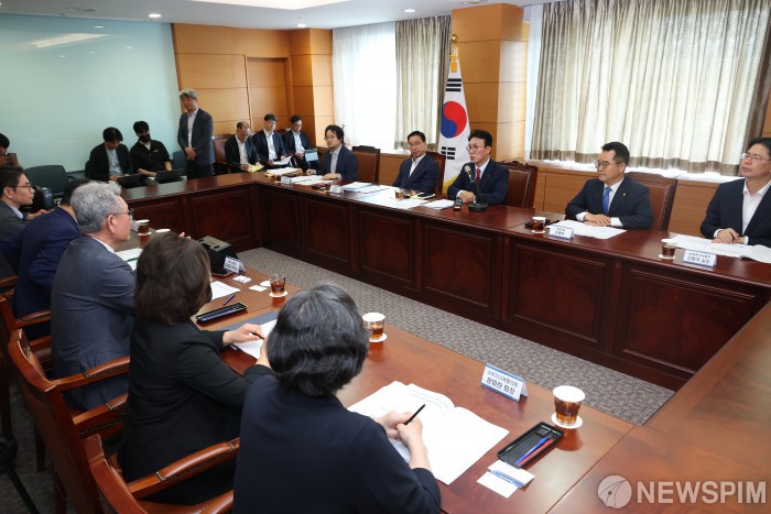 [서울=뉴스핌] 이길동 기자 = 김민석 국무총리 후보자가 13일 서울 종로구 통의동 금융감독연수원에 마련된 청문회 준비 사무실에서 열린 밥상물가 안정을 위한 경청 간담회에서 발언하고 있다.2025.06.13 gdlee@newspim.com