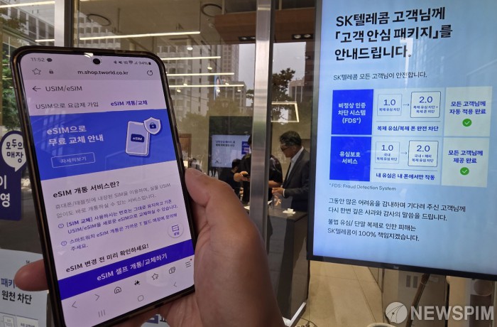 [서울=뉴스핌] 양윤모 기자 = 해킹 사태로 영업을 중단했던 SK텔레콤이 16일 이심(eSIM)부터 영업을 시작한 가운데, 서울 종로구 SK텔레콤 T월드 매장을 방문한 소비자들이 상담을 하고 있다. 2025.06.16 yym58@newspim.com