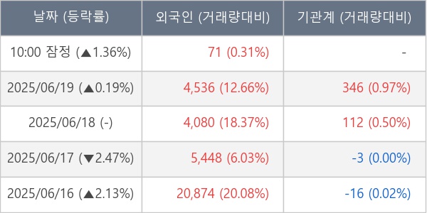[장중수급포착] 한국가구, 외국인 6일 연속 순매수행진... 주가 +1.36%