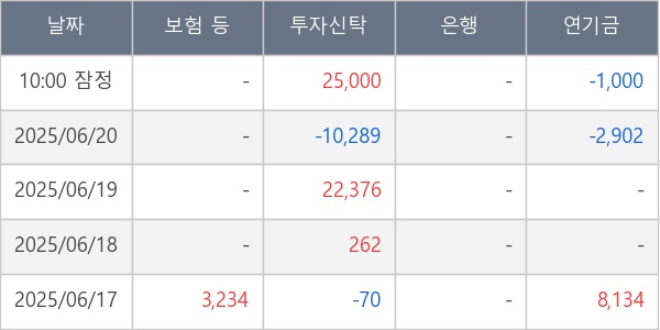 [표] 주요 기관별 순매매량 (단위 주)