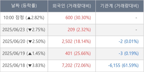 [표] 외국인ㆍ기관 순매매량 (단위 주)