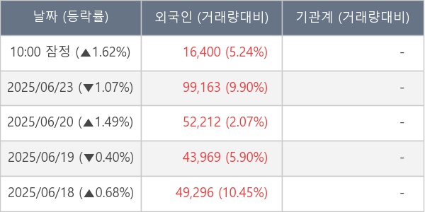 [표] 외국인ㆍ기관 순매매량 (단위 주)