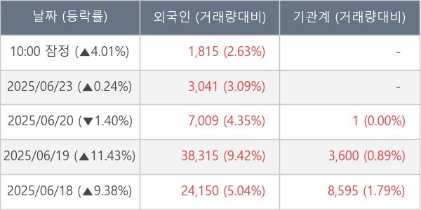 [표] 외국인ㆍ기관 순매매량 (단위 주)