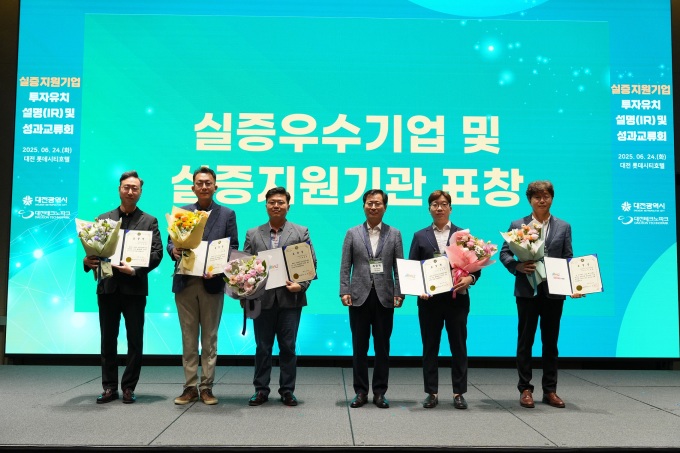 [대전=뉴스핌] 김수진 기자 = 대전시는 24일 롯데호텔 대전에서 지역 유망기업, 실증 참여기업, 벤처캐피탈(VC) 등 100여 명이 참석한 가운데 '2025년 상반기 실증 성과교류회'를 개최했다.