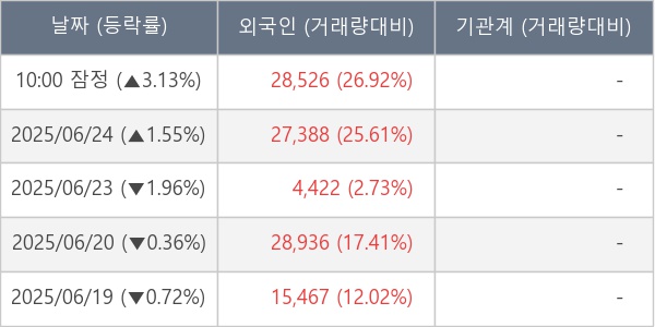 [표] 외국인ㆍ기관 순매매량 (단위 주)