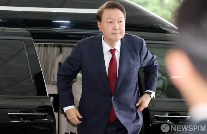 [서울=뉴스핌] 양윤모 기자 = 윤석열 전 대통령이 28일 오전 12·3 비상계엄과 관련한 내란·외환 사건을 수사하는 조은석 특별검사팀의 소환조사에 참석하기 위해 특검사무실인 서울고등검찰청에 출석하고 있다.이날 소환 조사에 윤 전 대통령 측에서는 김홍일,송진호,채명성 변호사가 입회했다. [공동취재] 2025.06.28 yym58@newspim.com